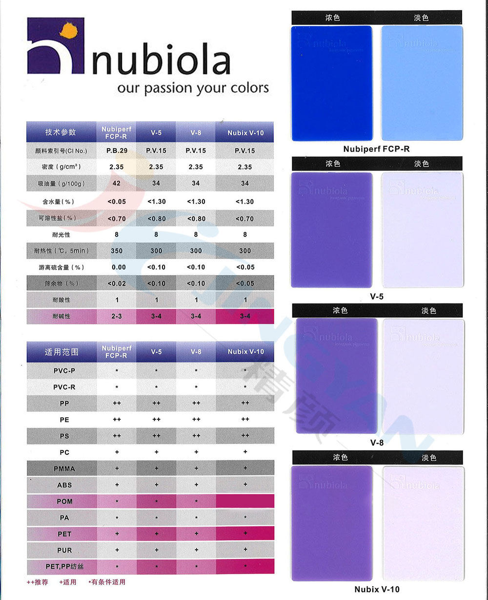 Nubiola群青蓝 AR:耐酸群青,RA-40的补充版,PVC管型材应用好