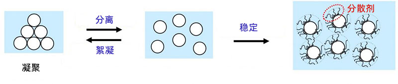 分散剂可以确保胶体稳定性,即防止絮凝。合适的分散剂能够确保固体颗粒互相排斥。吸附在固体颗粒表面的分散剂分子提供的排斥力必须强于吸引的范德华力。